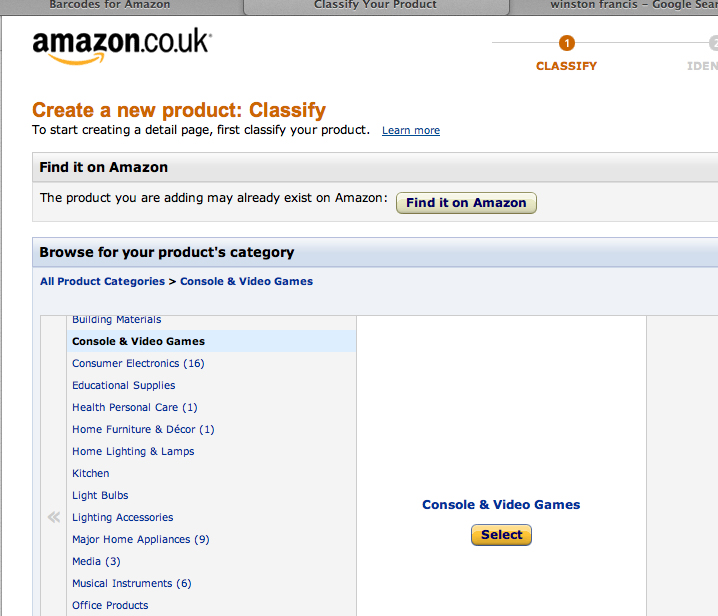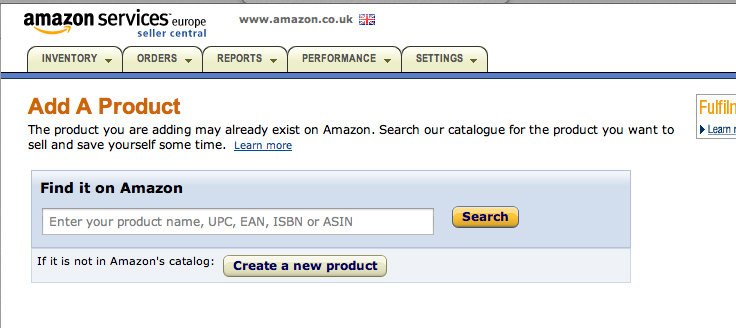 This is the important bit. You need to now click on the Create a new product button. This is as your product is not in the Amazon catalogue.click to enlarge