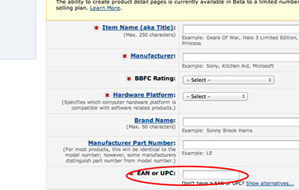 Now you need to fill out all the details describing your product. You MUST fill in all sections which have a * including the section for a EAN or UPC barcode. If you do not yet have a barcode please click here click to enlarge